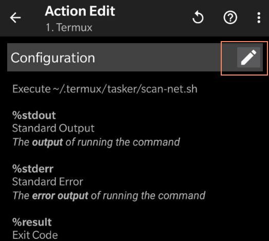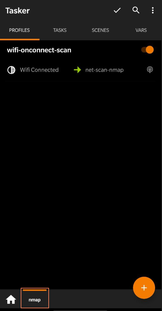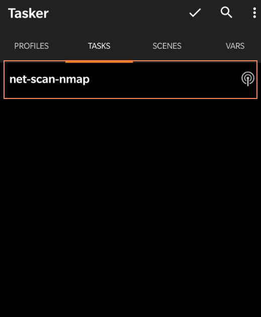 What's pretty cool with tasker is that we can use the output of the previous command and just do a quick pop-up to display all of the information on the screen when scanning is done. Note that everything on tasker is GUI based so it is a bit of a hassle but can be done quickly because of it's amazing import/export functionality open this page on your phone and click the following link After going through the prompt on your phone tasker should look like this: