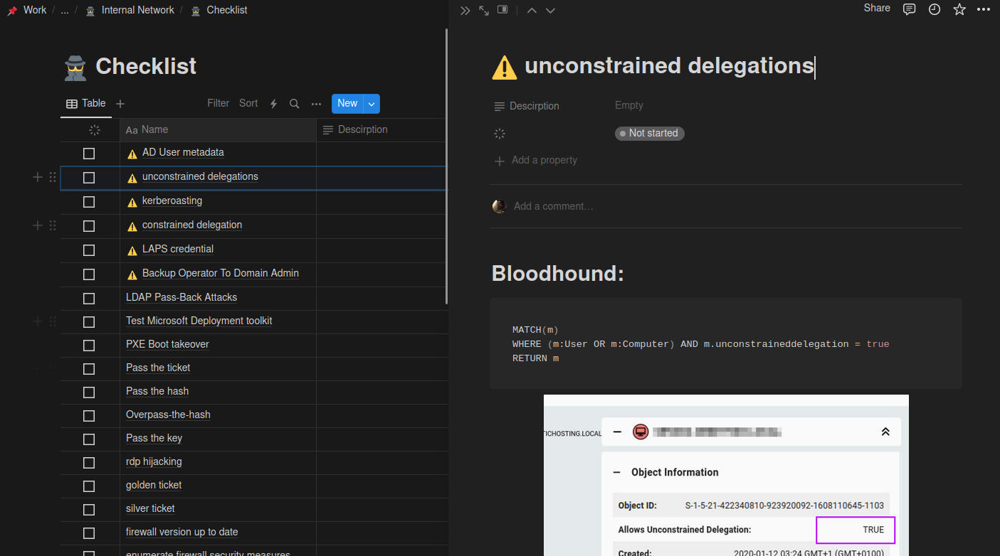 In some scenarios I will make checklists for some specific tooling or field without tying it into a full engagement. I inspired this concept from Jakob Friedl who has amazing checklists I am jealous :).