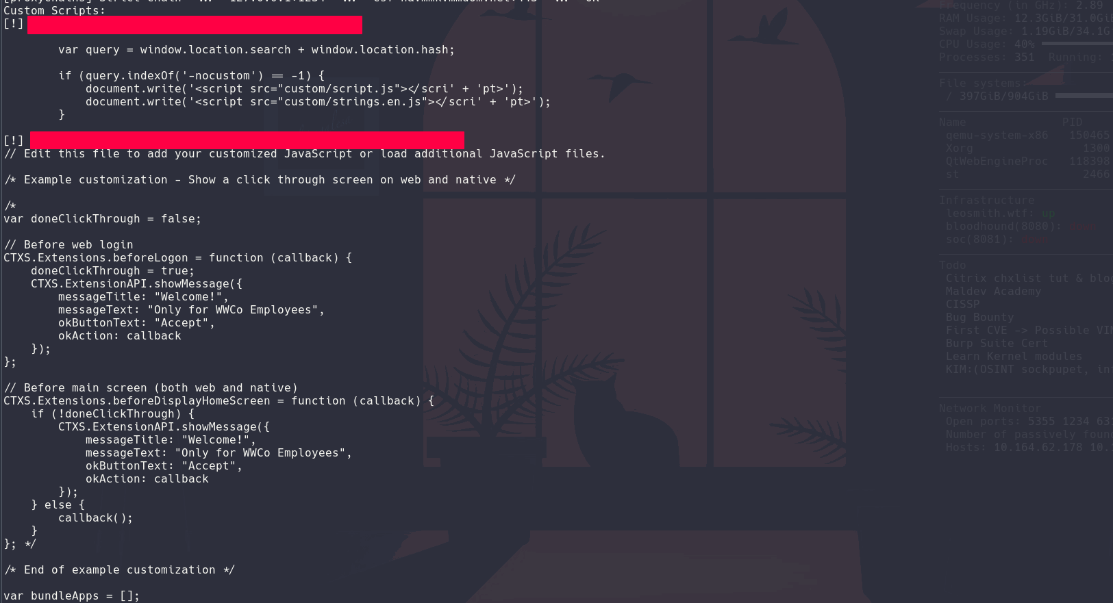 Yes citrix allows you to customize the GUI of the website for sysadmins to make it match the theme of the company limit the shown apps on the website / potentially hide cool stuff there. After digging through a lot more of that website i also discovered a few api endpoints that list out applications and their configuration. This is where I knew i needed to make a script that automated this recon phase and potentially allowed me to start the applications from my hacking machine.