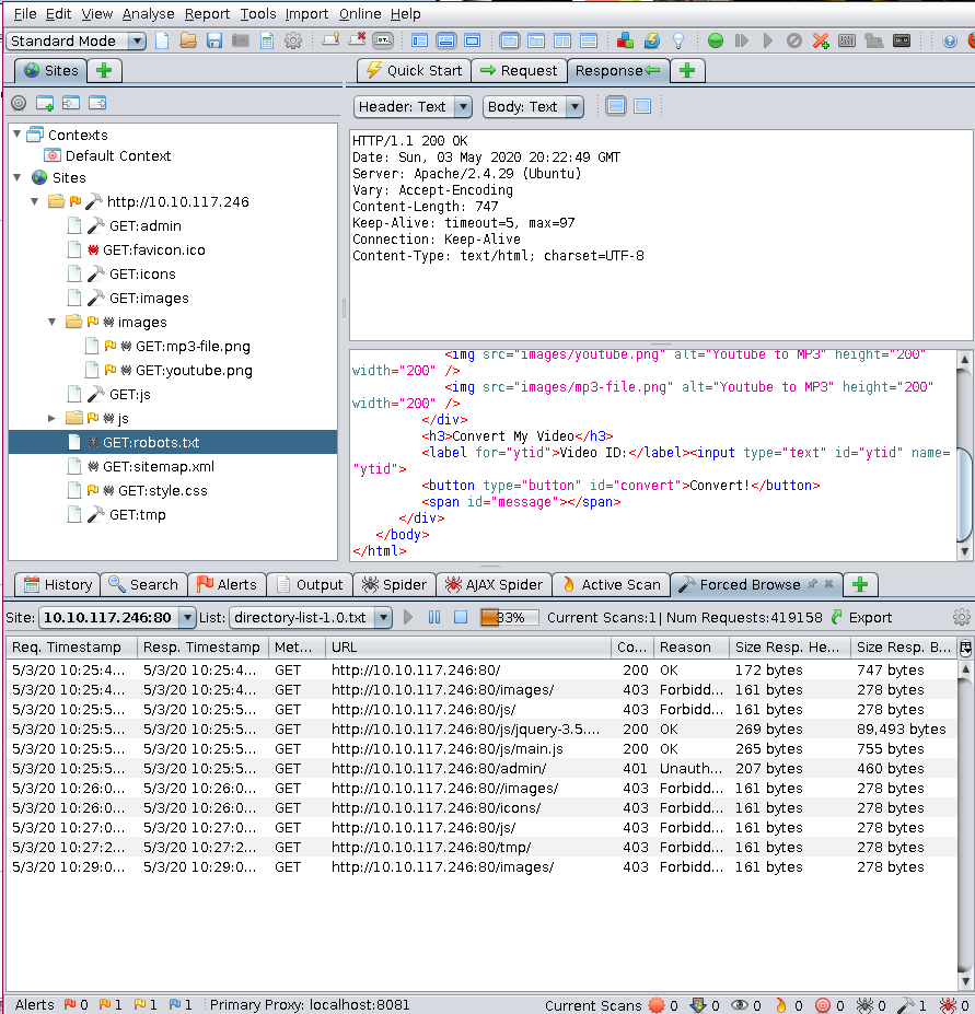 The scans didn't return much information for me to use so I decided to move to OWASP ZAP: