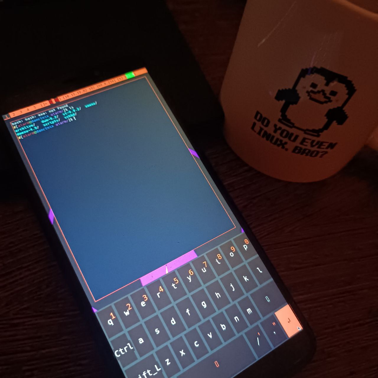Now what was needed the most is a way to get the DWM shortcuts I use in a simple way on the phone. Now I compared to sxmo before basically inside of that you get a giant dmenu script that handles most of the apps / menus for you. Now I already have screenshots for the things I use the most. I would not need a big convoluted menu system. The system settings I like I hard code them and never touch them no need for a menu and what is needed is in shortcuts.