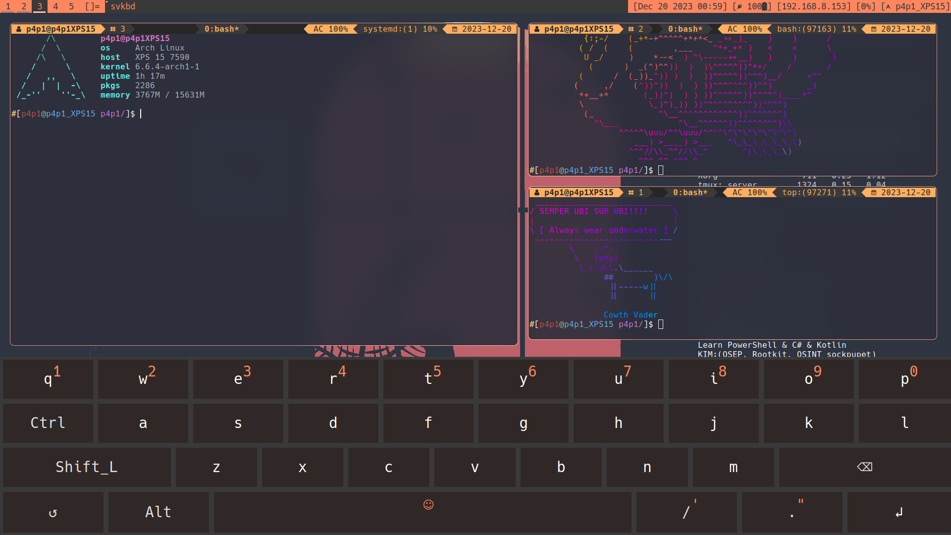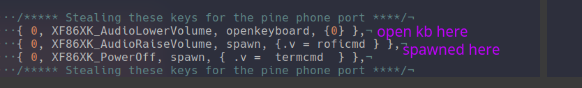 Now on most phones there are virtual keyboards and I would need one to get DWM working on my phone so I first went through existing pinephone OS with DWM, currently sxmo is supposed to be the main on inside of the source code I found SVKBD, which surprisingly is maintained by suckless. So I obviously got a copy of it inside of a fork and started working on a DWM patch to get this all functional with a keyboard. By reversing sxmo I realised it was a little before opening the keyboard on my pinephone and I realised they where using shell scripts to get those things seamless I wanted it baked into DWM so that is what I did ^^.
