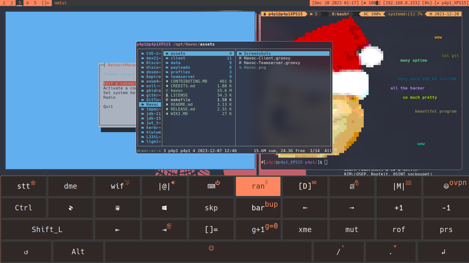 When you are inside of DWM you have a spawn function that will handle opening windows that you have defined in your shortcuts like for example the terminal, your menu system etc.. The possibilities of those shortcuts are endless. But since inside of dwm the spawn function only just runs the command inside of a fork I would need a way to catch when the keyboard is ran and then from there resize the windows to fit the keyboard.