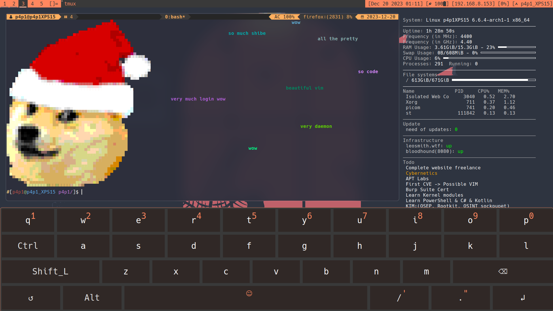 Now look I love how in my DWM I got little gaps around the windows and how my tiling is. Basically what I am looking for is that when the keyboard is not there I have the normal tiling but if I open the keyboard the tiling does not change but just shifts up a bit to allow me to not have the kb above everything.