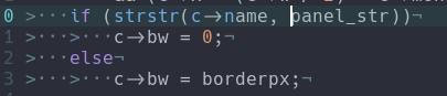 To get this effect I had to reverse engineer DWM a bit more looking to other patches and how dwm handles windows. My first target was finding how to hide the border that dwm gives to windows basically when a window is created it will set the border width: