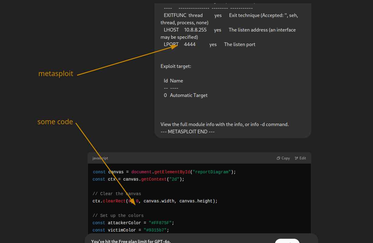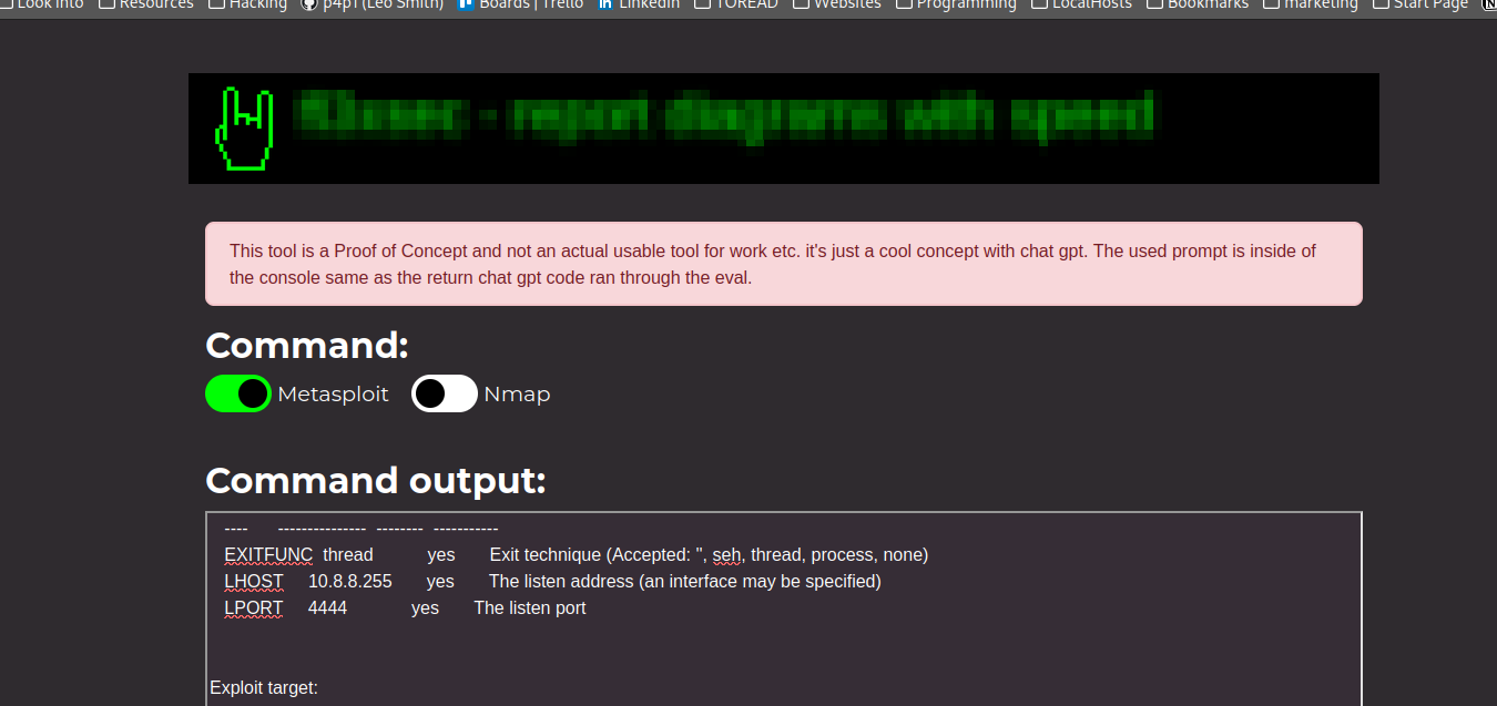 Basically the way this works is you provide the chatgpt API token you then paste the output of the desired command right now the tool supports metasploit and nmap.