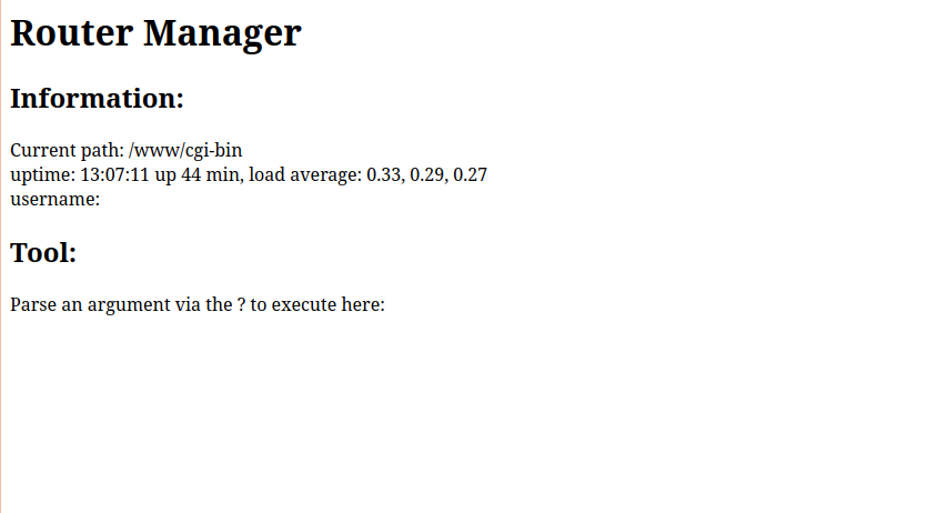 After adding the /bin/sh as a cgi-bin interpreter I can just drop a vulnerable shell script inside of /www/cgi-bin. Since every script in that folder will be executed.