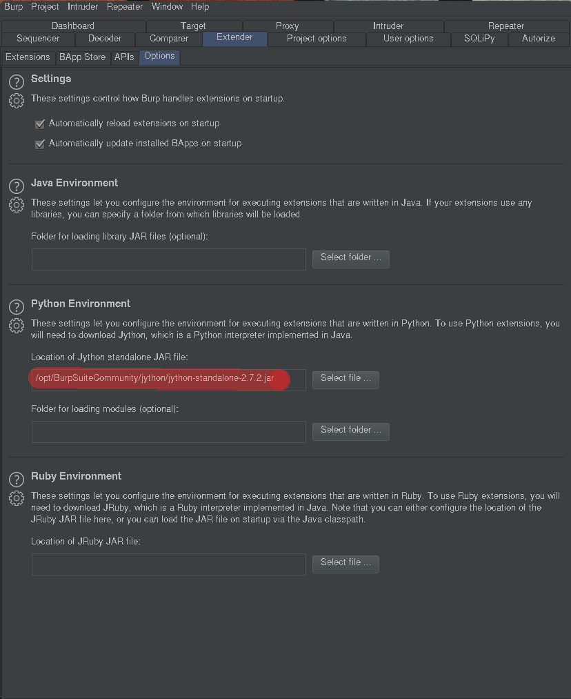 To start, you first need to setup BurpSuite to use plugins inside of it. To do that you need a copy of Jython, the Java interpreter of python. You can download it here.