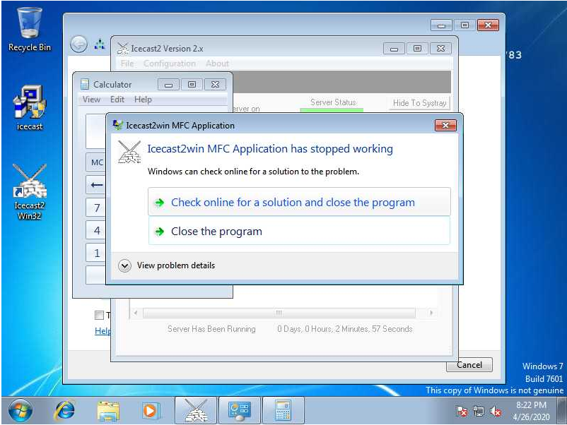 On the screen there was a few windows open but at least I could see the screen correctly so that I could debug the exploit in case. I then implemented the shellcode to spawn calc.exe and looked back at the screenshare.