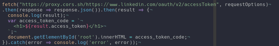 Basically to use this project you need to be able to login with your account so that it can post on it. I spent a while to setup oauth2 to work. Basically linkedin asks you to have a company registered to be able to get API keys on it so I spent 2 seconds to make mine and then I had access to all of them keys :) follow it here. I then started to make a dummy html page to test out oath2. Dumb decision was made here you will see why later.