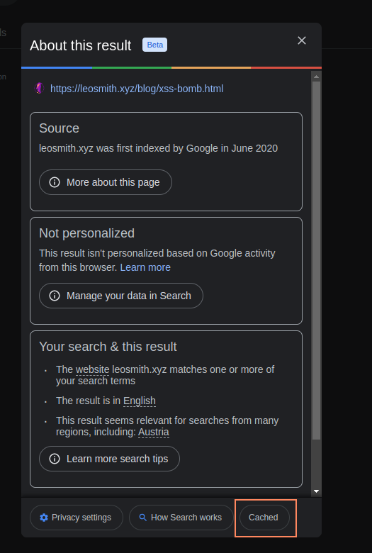 Now in this specific example the google cache does know that it is not .wtf instead of .xyz so it will be redirecting you to that specific cache. To view google cache it is quite easy inside of a search item in google you have three little dots next to the search query: