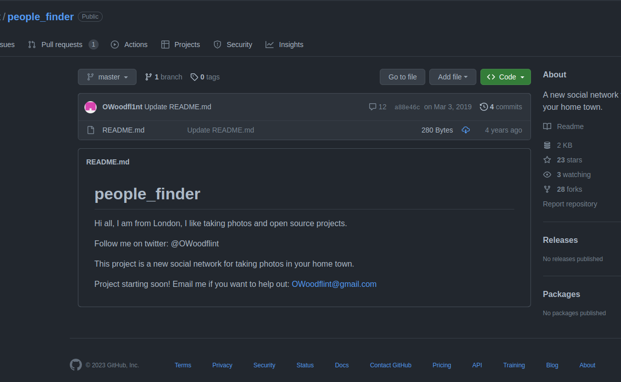 Inside of his blog post we can see that there is his full name which can be used for later on out research. We can also start inspecting the github account of the Oliver by looking at his only project which is people_finder.