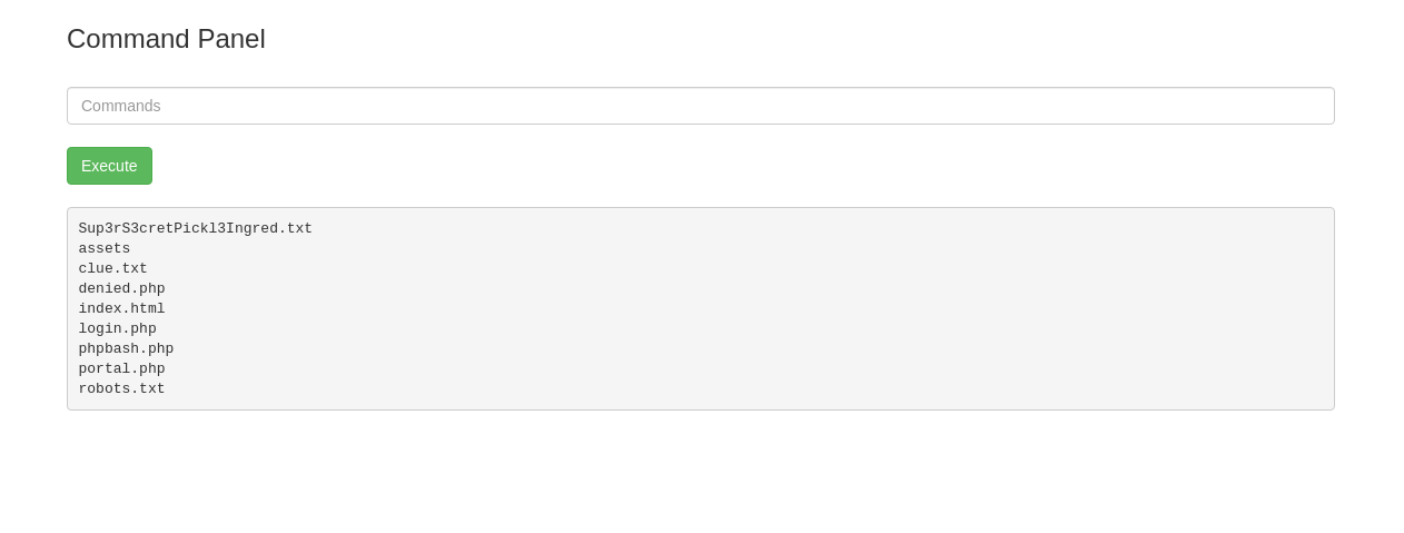 From here after logging in with ricks account there was a command panel. Seeing this I wanted to inject some kind of reverse shell so that I could mess around a lot more! So I began by seeing who I was and what was inside of the directory.
