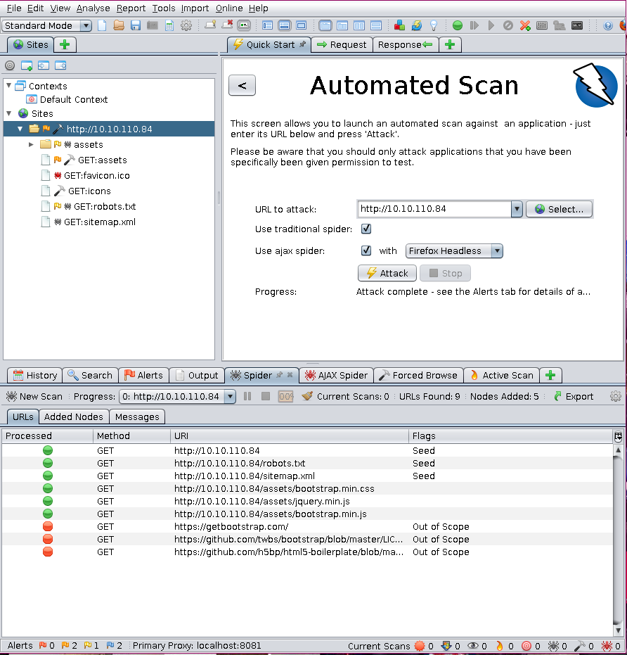 While the nikto and nmap scans where running I also decided to run a few scans with OWASP zap proxy just in case.