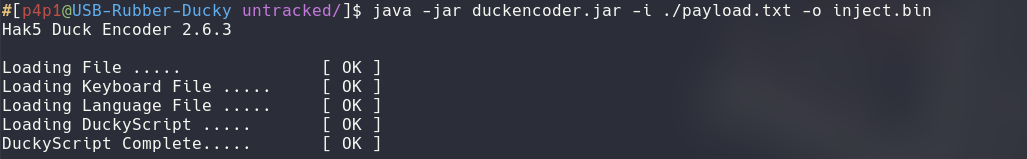 $ java -jar duckencoder.jar -i ./payload.txt -o inject.bin