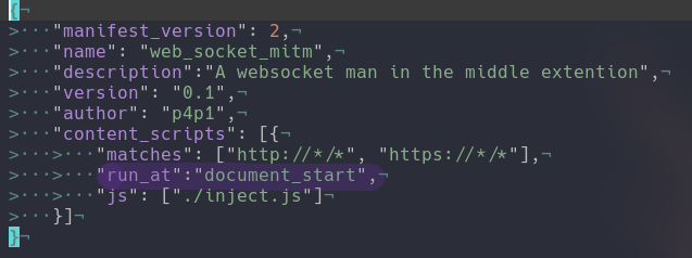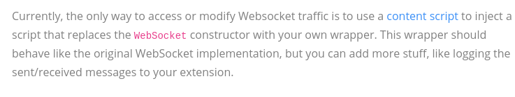 So to get around the issue I was having I decided to implement the JS file inside of a chrome extension to make the impact of this bigger. Maybe a threat actor would infect the web browser with that extension to steal conversations over websockets on tech support platform. Kind of like chat with our tech support team through you web browser.