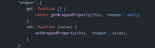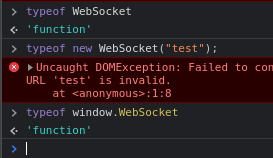 After seeing this line I had a kind of Vietnam flash back of doom from when I started learning Javascript. I get it it does look cool when people code like this. But its useless and cumbersome to read. So I figured I could figure out a solution on my own. So I opened the JS console and starting looking at the types returned by the websocket function.