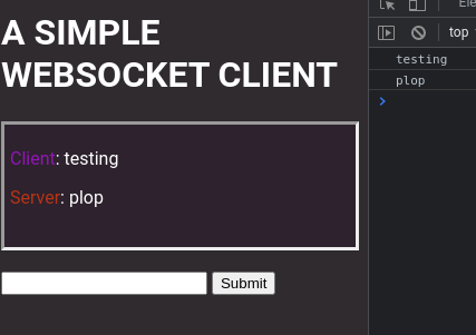 Basically this page connects to ws://localhost:1234/ and sends basic text. I wanted to create a simple chat client from server -> client and vis versa.
