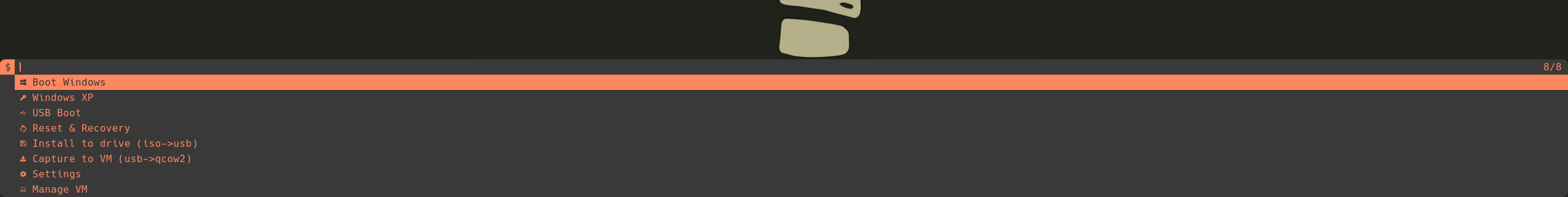 In the initial menu you will also see the options to USB Boot, Install to drive and Capture to VM.